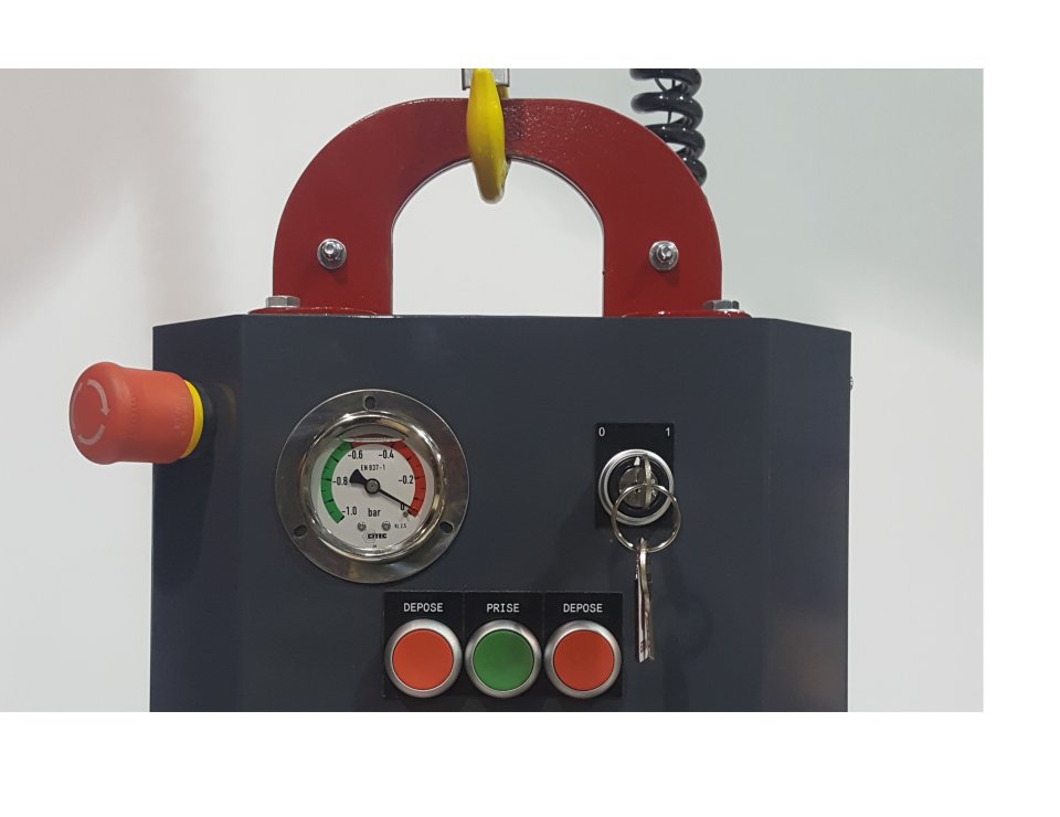 Du fait de sa grande réserve de vide intégrée et de sa génération de vide en parallèle du temps de manutention, ce palonnier assure la prise des pièces instantanément et donc un rendement très important.