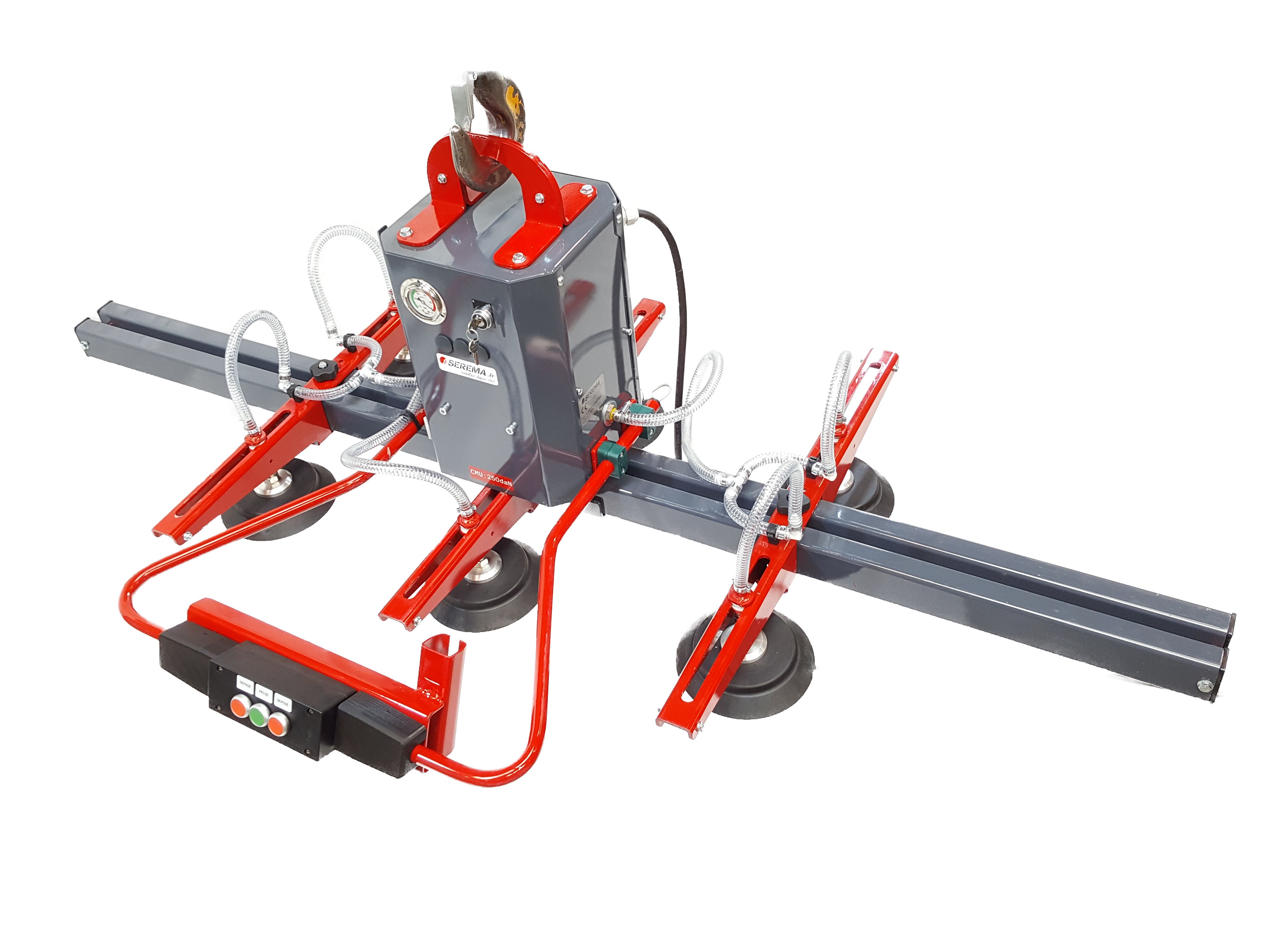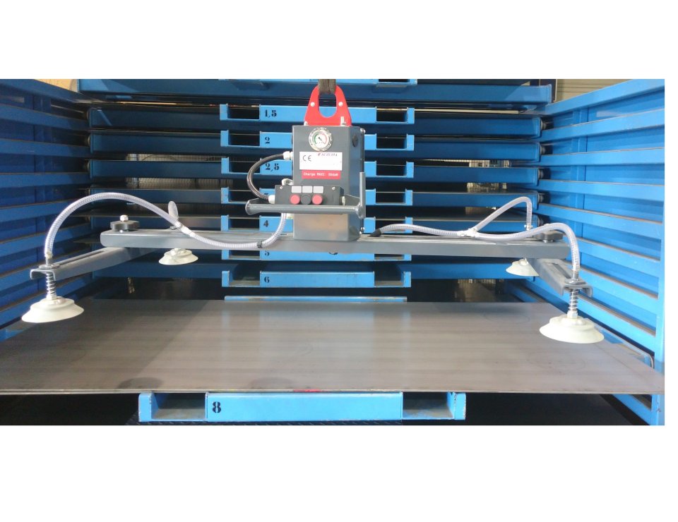 Suivant la rigidité du produit à manutentionner, le palonnier est équipé de plus ou moins de ventouses et ce, afin de répartir les points de suspension sur l'ensemble de la surface de la pièce.