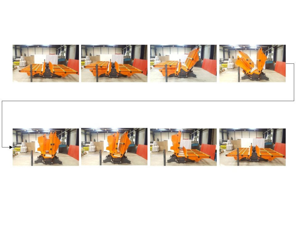 De la gestion des dimensions de la pièce, au cycle de retournement de cette charge, tout dans ce retourneur est automatique. Equipé de son propre automate, il peut fonctionner dans les deux contextes industriels suivants :