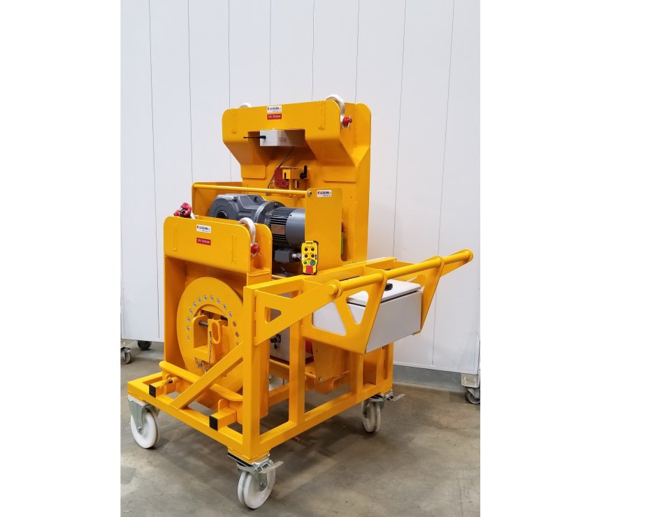 Composé de deux ensembles rotatifs presqu’identiques, l’un étant motorisé l’autre libre, ils se présentent chacun sous la forme d’un châssis incluant une couronne à bille dentée pour la rotation et une élingue.